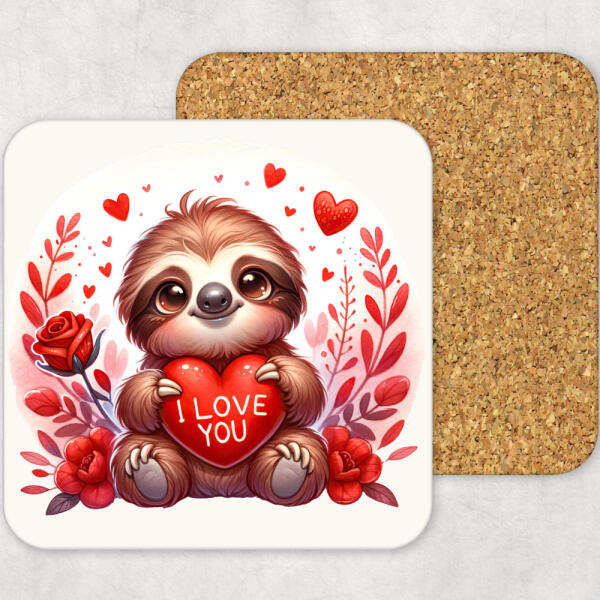 Szerelmes lajhár poháralátét MDF, parafa aljjal.