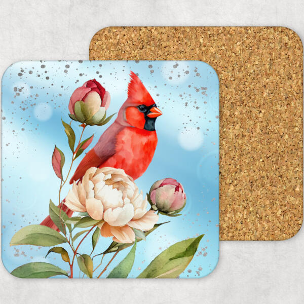 Piros madárkás poháralátét MDF, parafa aljjal.
