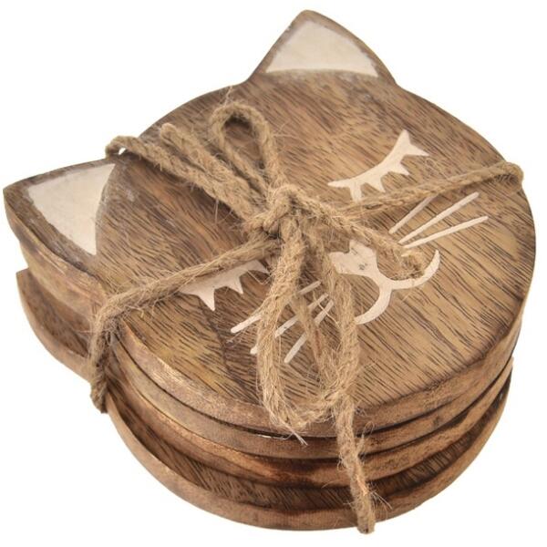 Az aranyos macska arcával díszített poháralátétek nem csak e szőrös lények minden kedvelőjének örömet szereznek. Masszív mangófából készültek, jellegzetes mintával.